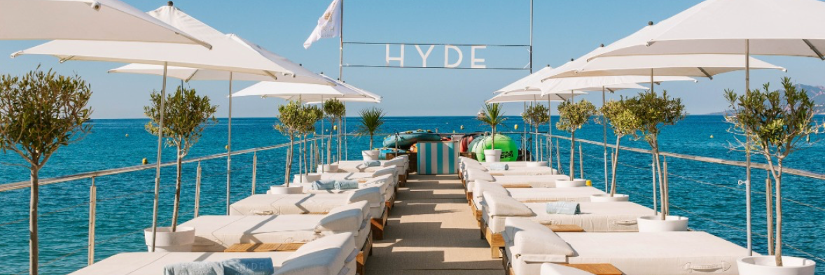 Located on the prestigious Boulevard de la Croisette, Hyde Beach Cannes is a true gem of the French Riviera, offering a unique experience that combines relaxation, fine dining, and a festive atmosphere. Nestled within the Mondrian Cannes hotel, this private beach is the perfect place to enjoy the Dolce Vita with a breathtaking view of the Mediterranean Sea.