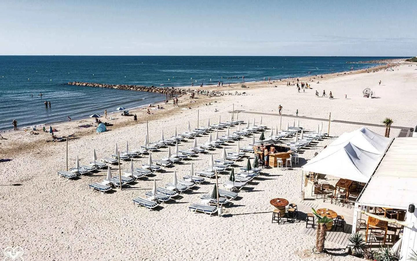 Le Spot in Frontignan is a private beach that embodies relaxation and friendliness along the Mediterranean Sea. Located on the plage des Aresquiers, it offers an idyllic setting for those who wish to unwind on comfortable sunbeds or enjoy simple yet delicious cuisine in a cantina-style restaurant. With breathtaking views of the water, it's the perfect place to savor sunsets while enjoying a good glass of wine.