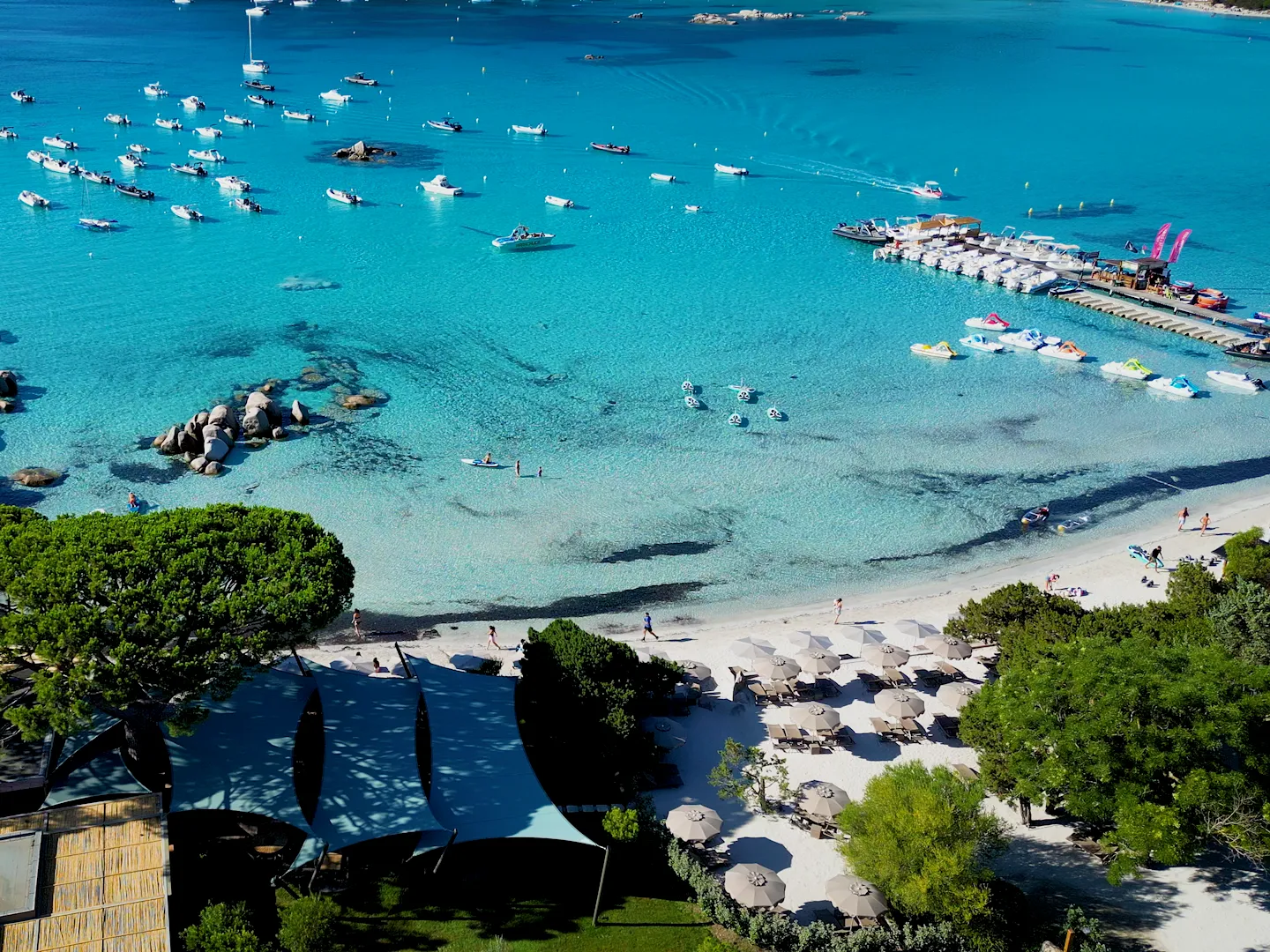 Located in the heart of Santa Giulia Bay in Porto-Vecchio, Club Trois Deux operates as a structured beach club set on one of southern Corsica’s most sought-after shorelines.