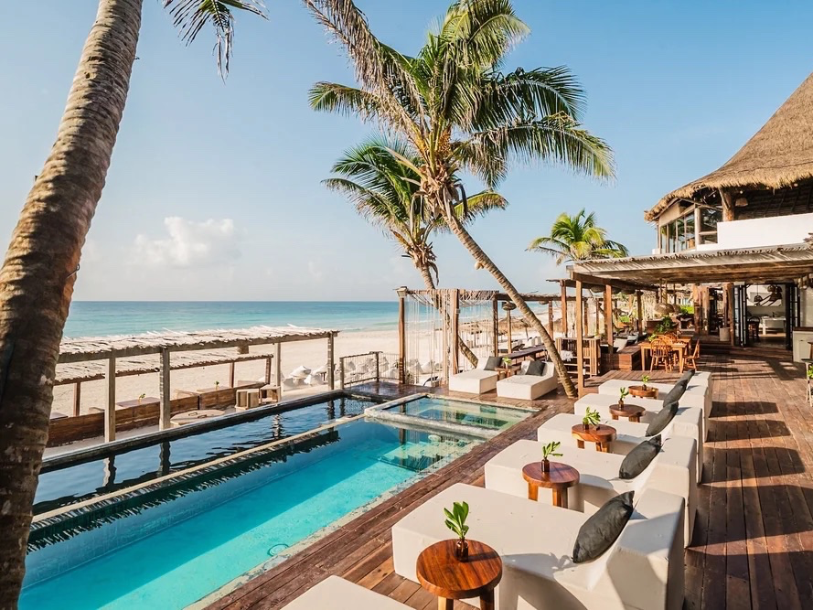 Lo que lo diferencia es ese equilibrio poco común entre playa, bienestar y verdadera sensación de espacio. No es un beach club construido alrededor del exceso o la exhibición, sino una dirección eco-chic que apuesta por la comodidad, el mar Caribe y una atmósfera más respirable que la de los lugares más ruidosos de la zona.