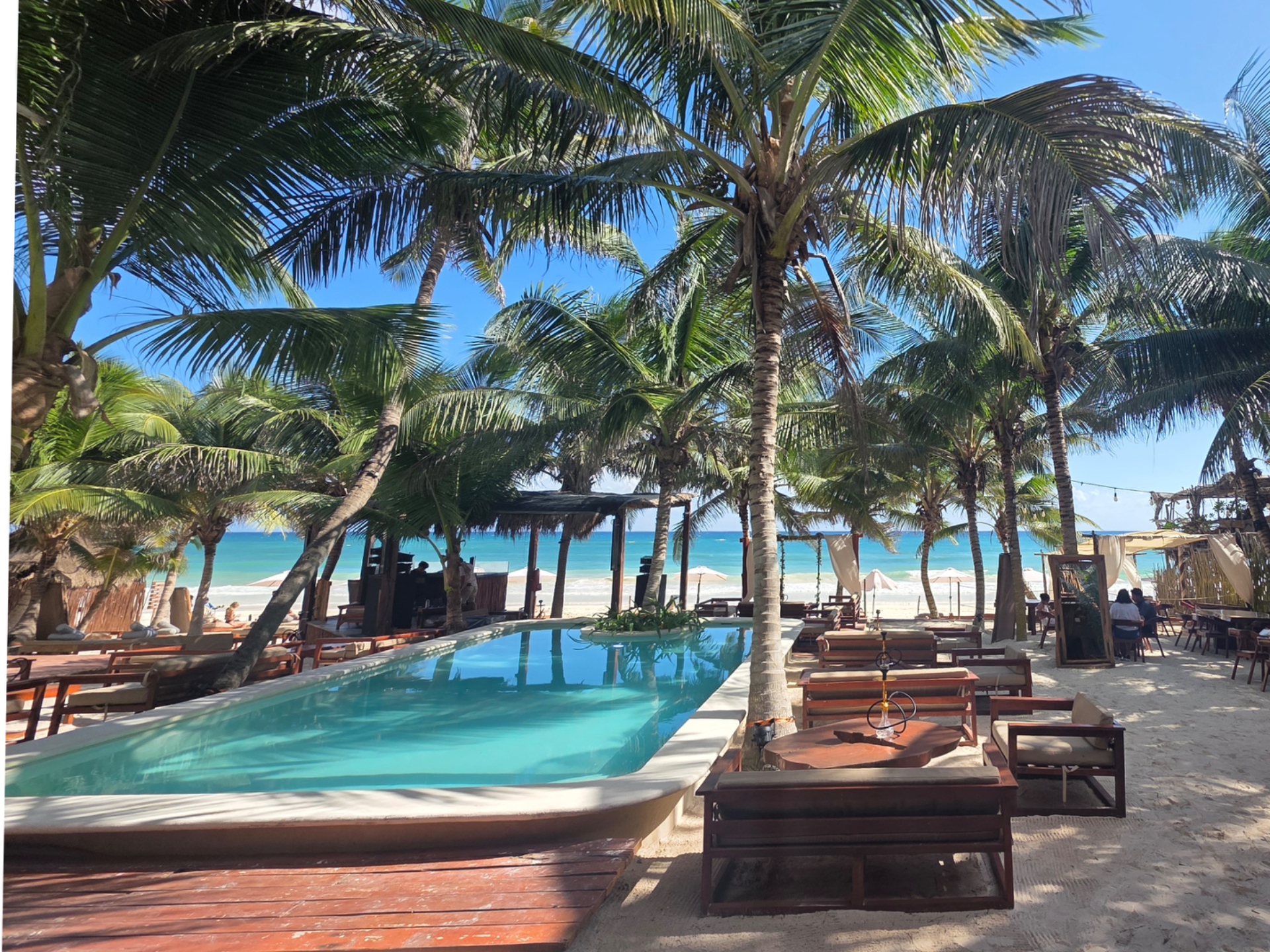 Tulumania está pensado como un espacio social de día, combinando piscina central, acceso a la playa y zonas lounge informales. La experiencia gira en torno a la música, los cócteles y una atmósfera social típica de los beach clubs de la Riviera Maya.