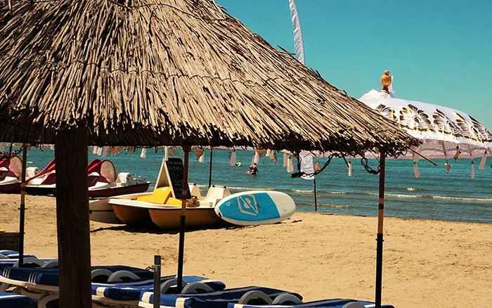Côté Mer ti invita a vivere un'esperienza intima in un ambiente autenticamente balinese. Situata nel cuore di Grau-du-Roi, a pochi metri dal Seaquarium e dal mini-golf, questa spiaggia privata è perfetta per una giornata di relax e divertimento con la famiglia o gli amici.
