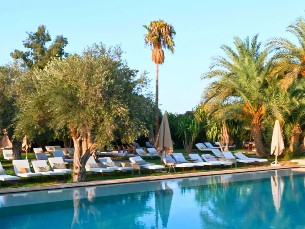 A pochi minuti dal centro di Marrakech, lungo la strada di Amizmiz, Villa Nour è un boutique hotel intimo pensato per vivere una giornata piscina elegante e rilassante. Circondata da giardini, palme e spazi verdi, la proprietà combina sole, comfort e uno stile marocchino contemporaneo. Con due piscine, di cui una riscaldata secondo la stagione, lettini confortevoli, ristorante e bar, Villa Nour offre un ambiente luminoso e tranquillo per una pausa adulta sotto il sole.